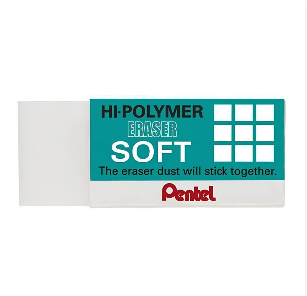 Forma pouca sujeira A borracha Hi-Polymer Eraser Soft da Pentel apaga sem esforço e sem borrar. Suavidade e qualidade incomparável de uma das borrachas mais queridas do mercado.