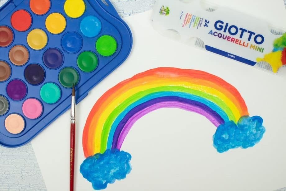 GIOTTO blocos de tinta aquarela escolar cuja forma os torna mais fáceis de usar. Eles vêm em uma grande gama de cores ricas, vivas e altamente abrangentes. Com um pincel sintético de alta qualidade. Equipado com uma paleta de pintura cujo design evita a dispersão da água e um pincel gratuitamente.
